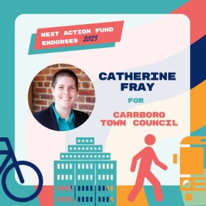 “Catherine has a long track record of engagement on town issues and has always advocated to do the right thing for our communities. With their service as Chair and long time member of the Planning Board, and Chair of the Carrboro Connects Comprehensive Plan Taskforce, they have shown they will hit the ground running on Town Council. I am looking forward to continuing to work with Catherine and to casting my vote for them.”